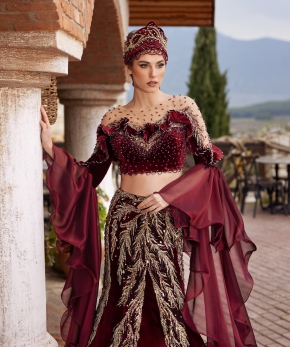 AĞIR NAKIŞ İŞLEME BORDO BİNDALLI
